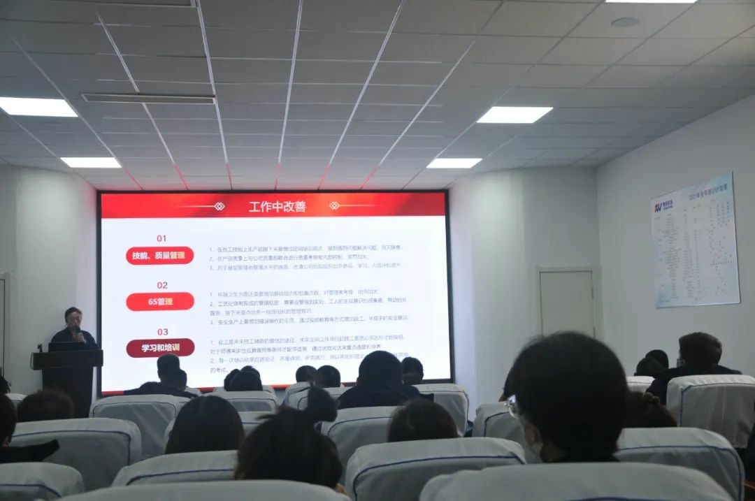 生產(chǎn)部部長從“去年工作回顧”“取得工作成果”“工作不足改善”“新年工作計劃”四個方面出發(fā),對2021的全年工作情況進行了總結(jié)概述,匯報了本年度生產(chǎn)任務(wù)的完成情況,重點強調(diào)了安全生產(chǎn)管理,提出要時刻做到“警鐘長鳴”,認真執(zhí)行安全操作管理規(guī)定,落實安全培訓(xùn),讓安全意識深入人心;展示了2021年各方面工作取得的成果,同時指出了工作中存在的不足及改善措施,并提出了相關(guān)建議,制定了2022年的工作目標。