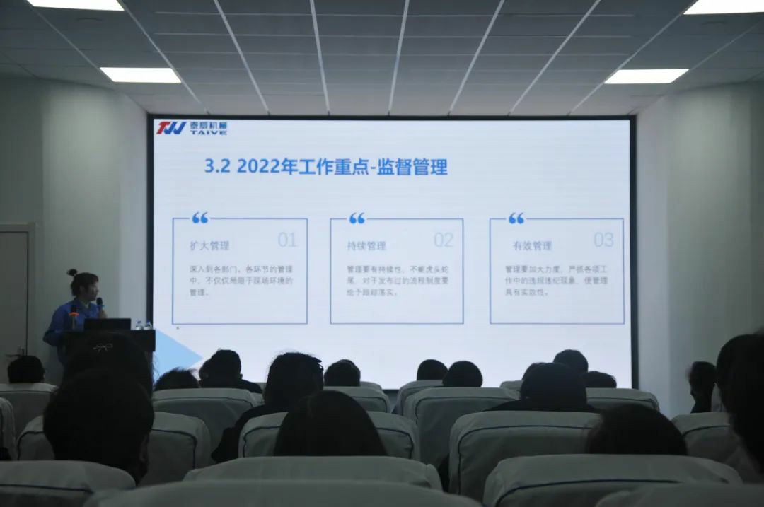 為了深入推進企業(yè)穩(wěn)步、高效、持續(xù)發(fā)展,總結(jié)公司在2021年各項工作開展情況,結(jié)合存在的問題,提出可持續(xù)性改進措施,打造具有泰威特色的發(fā)展理念和管理模式,2022年1月15日下午,遼寧泰威機械制造有限公司在一樓階梯會議室召開了2021年年終總結(jié)會,公司各部門管理人員參加了此次會議。